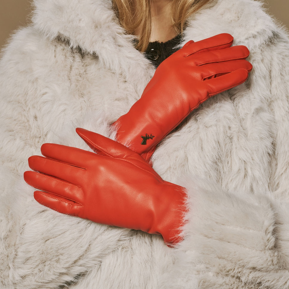 Ivy (orange) – Sheepskin leather gloves with wool/cashmere lining & touchscreen feature