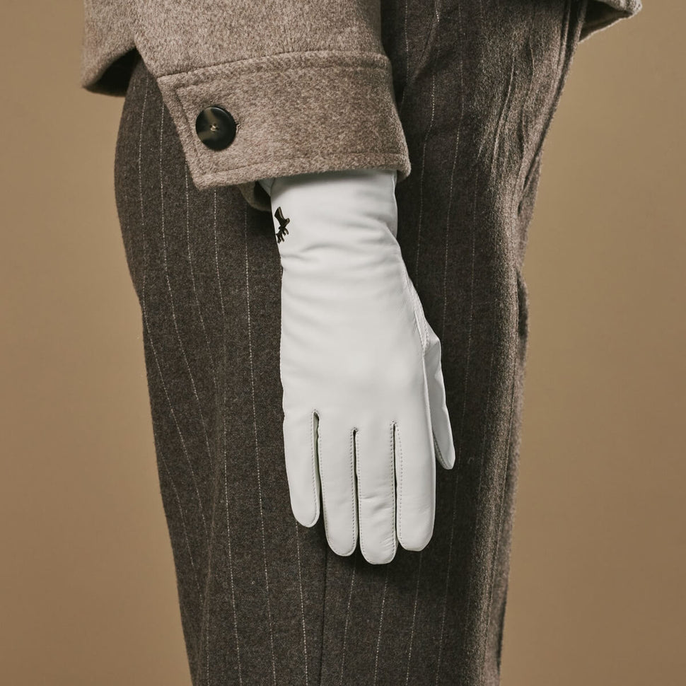 Ivy (white) – Sheepskin leather gloves with wool/cashmere lining & touchscreen feature