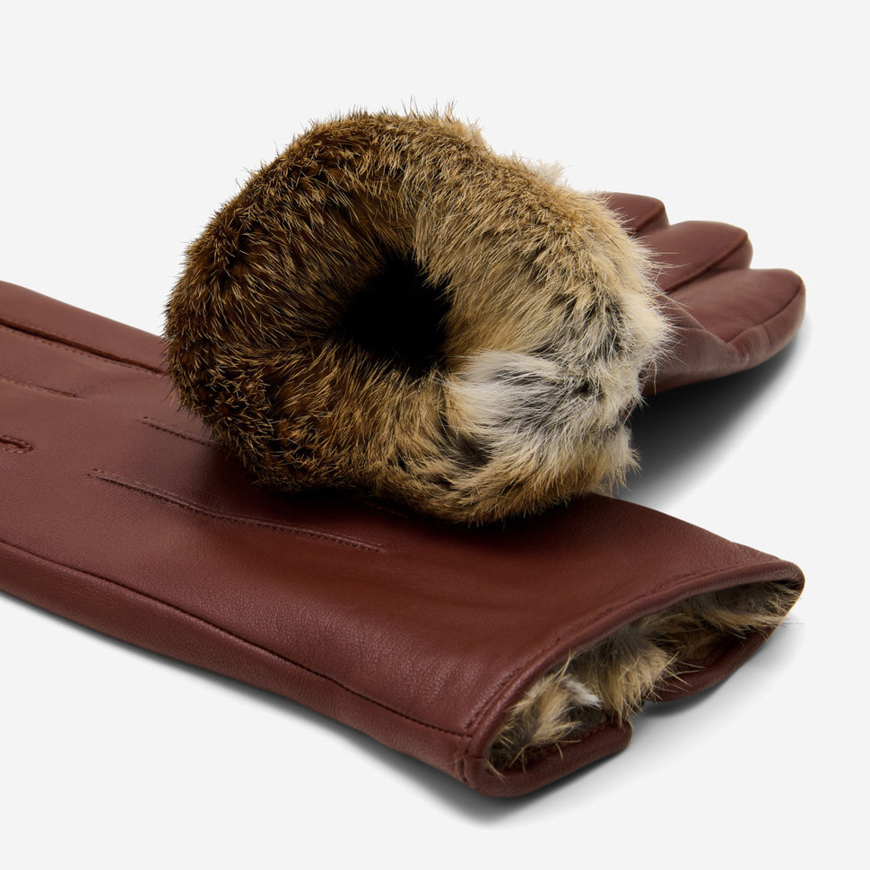 Alexander (brown) - Men’s lambskin leather gloves with luxurious rabbit fur lining and touchscreen feature