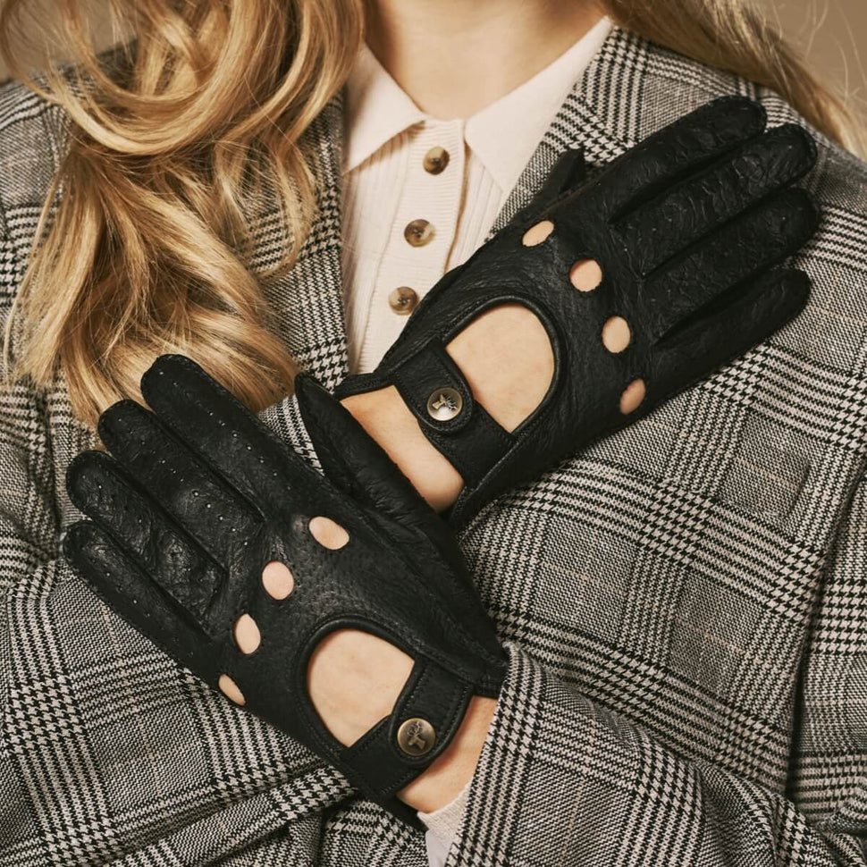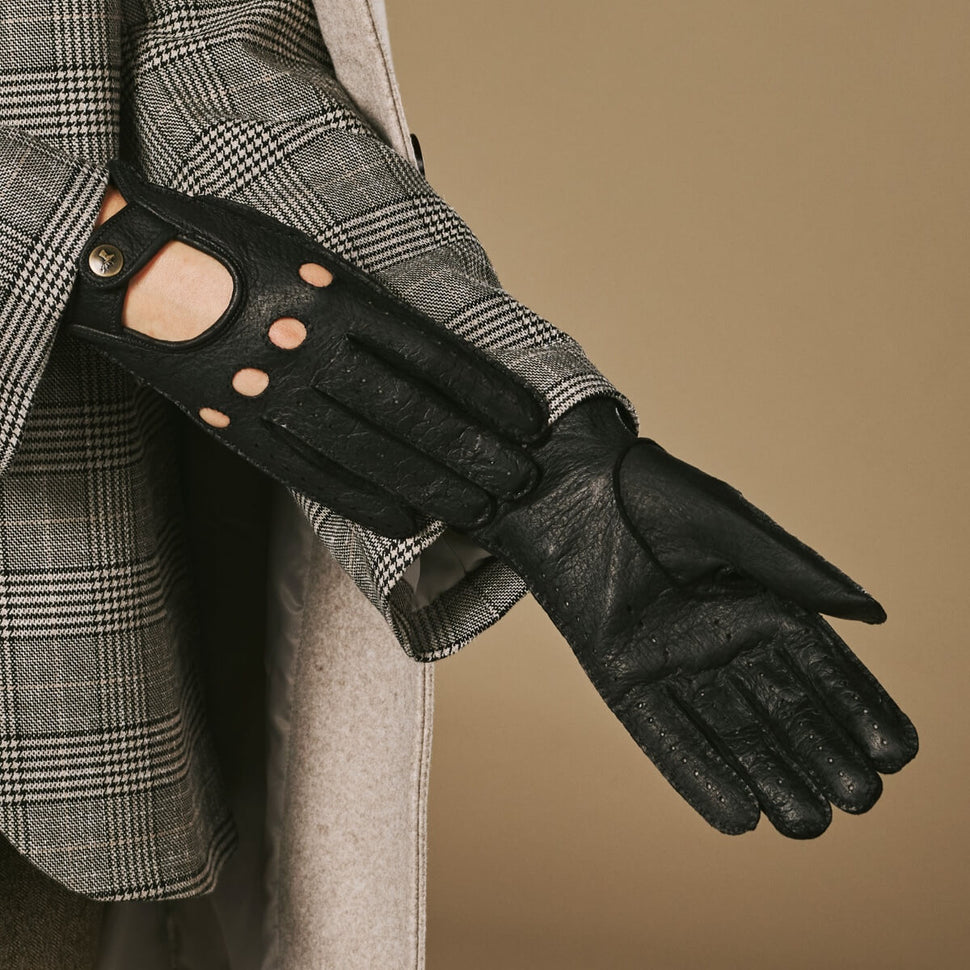 Cecilia (black) - Exclusive peccary leather women's driving gloves