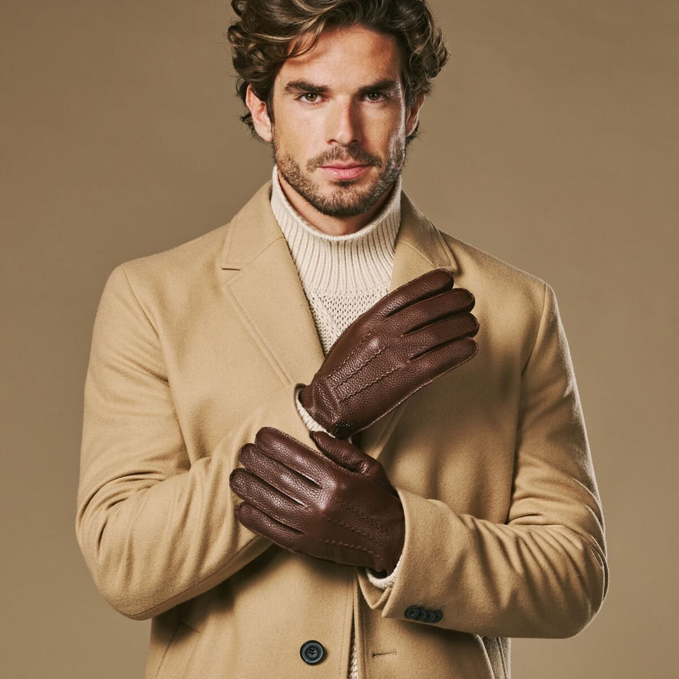 Charles (brown) – Luxurious American deerskin leather gloves with warm cashmere lining