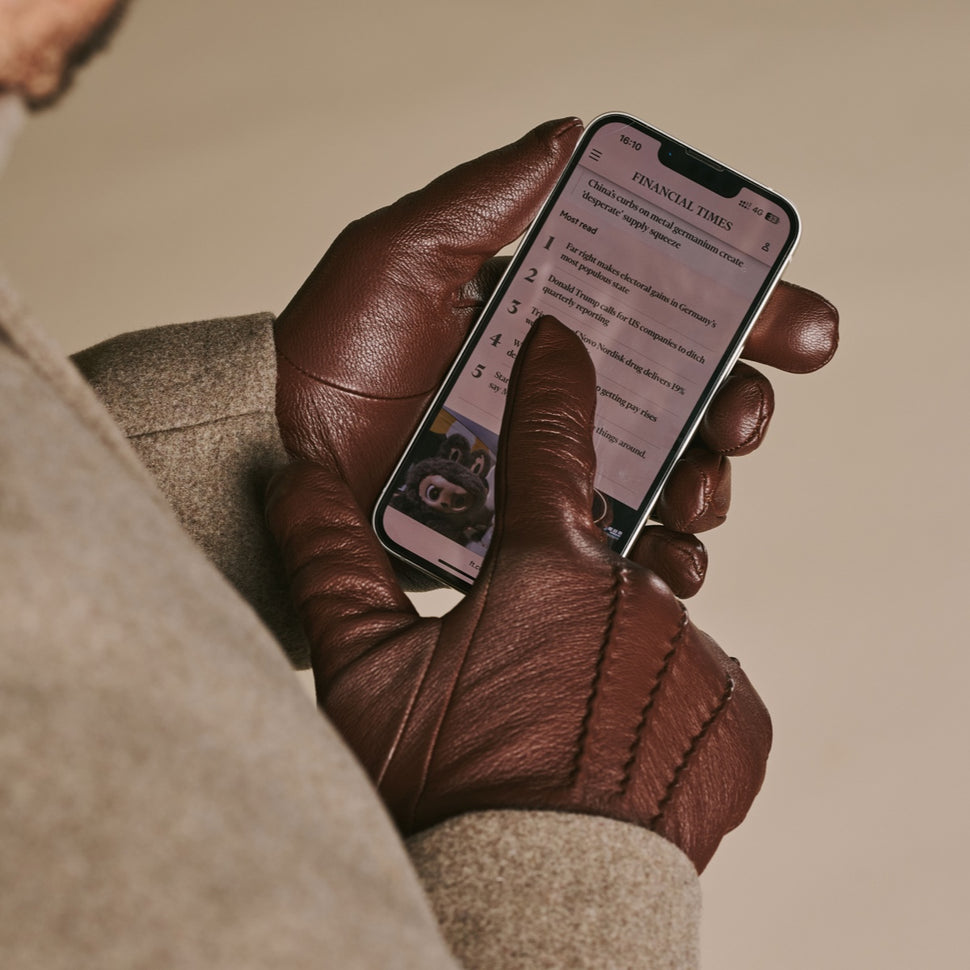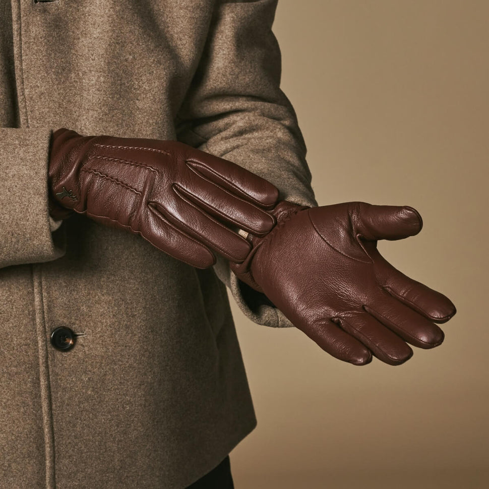 Harvey (brown) - Goatskin leather gloves with luxurious wool lining & touchscreen feature
