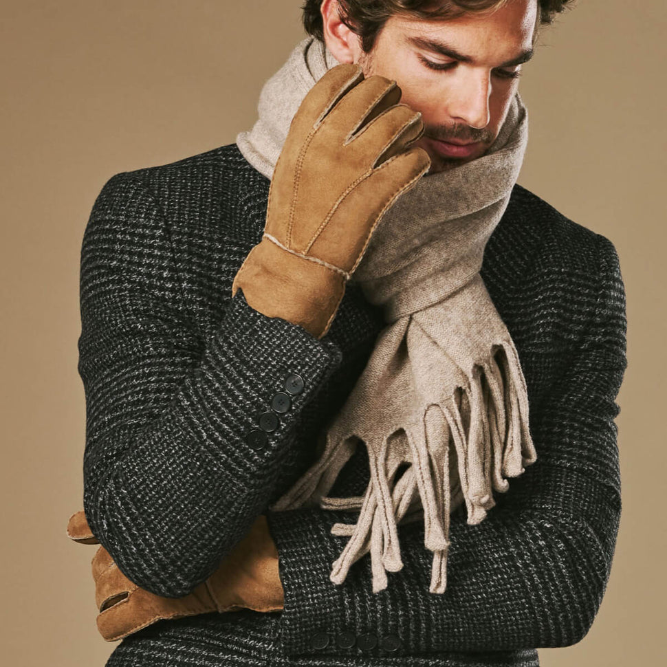 Practical warmth: Taylor is a men’s glove from Schwartz & von Halen, made from durable sheepskin patches with a soft suede finish on the outside. Strong and hard-wearing, these gloves are built for everyday winter use.