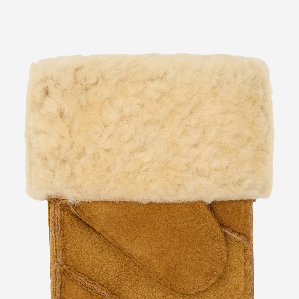 Sheepskin lining: The natural sheep fur lining on the inside provides reliable insulation and comfort. Warm and cozy, it keeps your hands protected against cold temperatures.